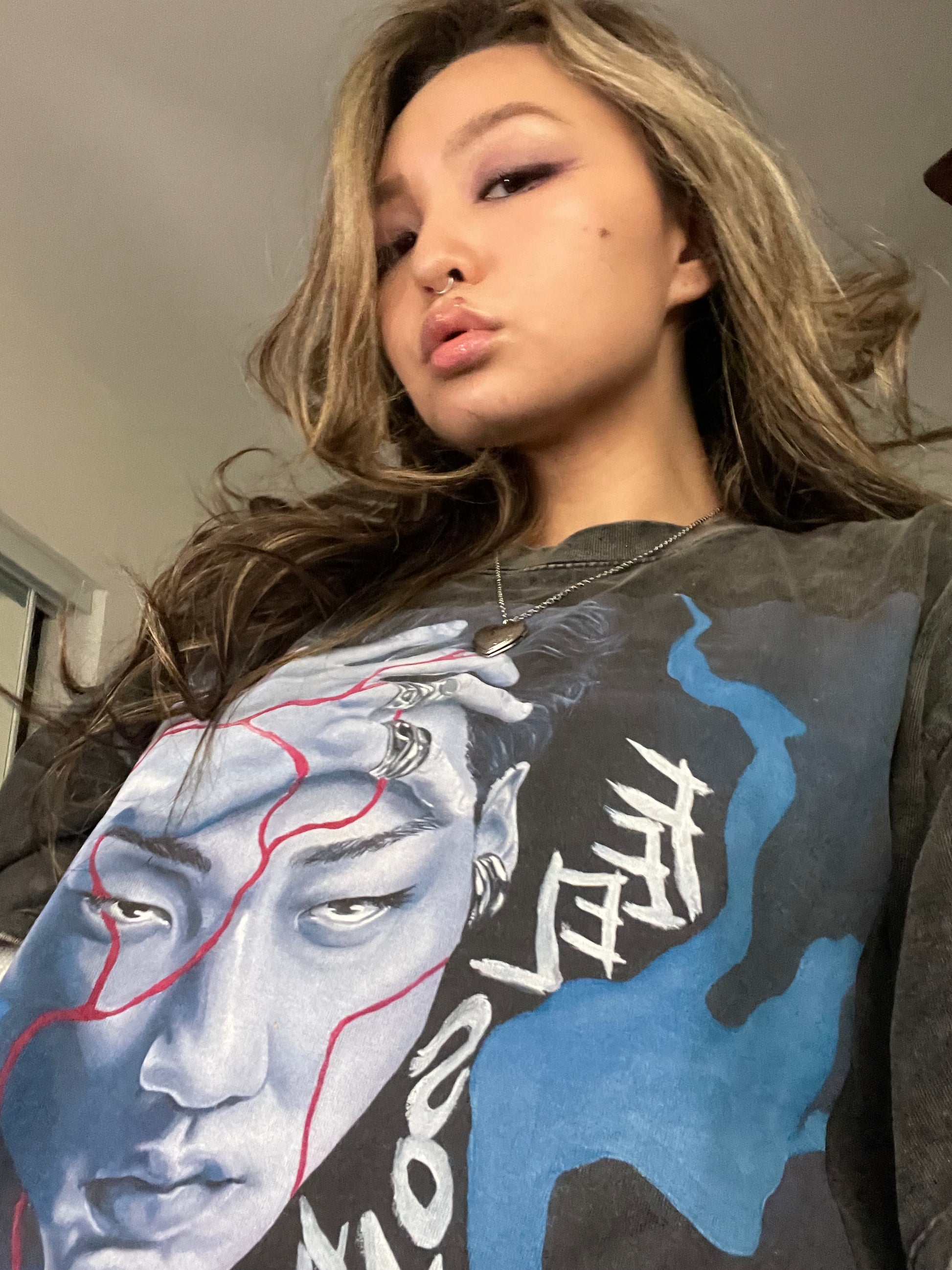 'Feel Something' Short Sleeve Acid Wash Oversized T-Shirt